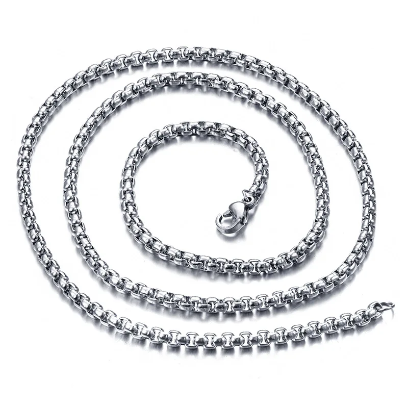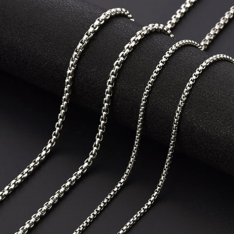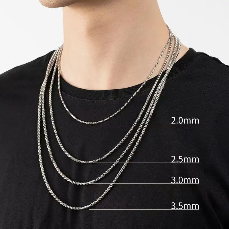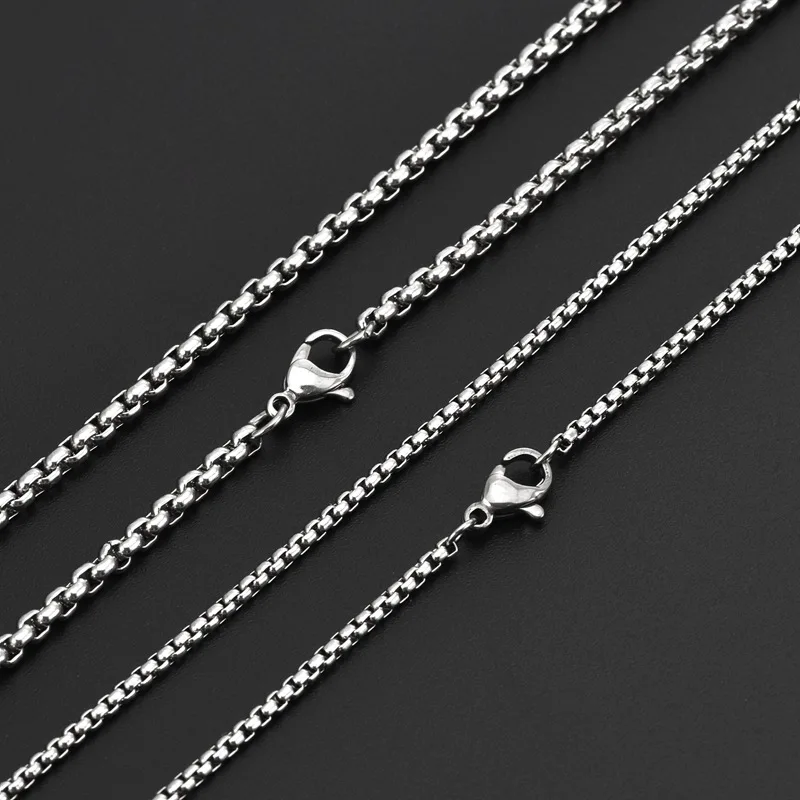2-5MM Width Stainless Steel Square Rolo Chain Necklace For Women Round Box Choker Necklace Men Fashion Jewelry Accessories
