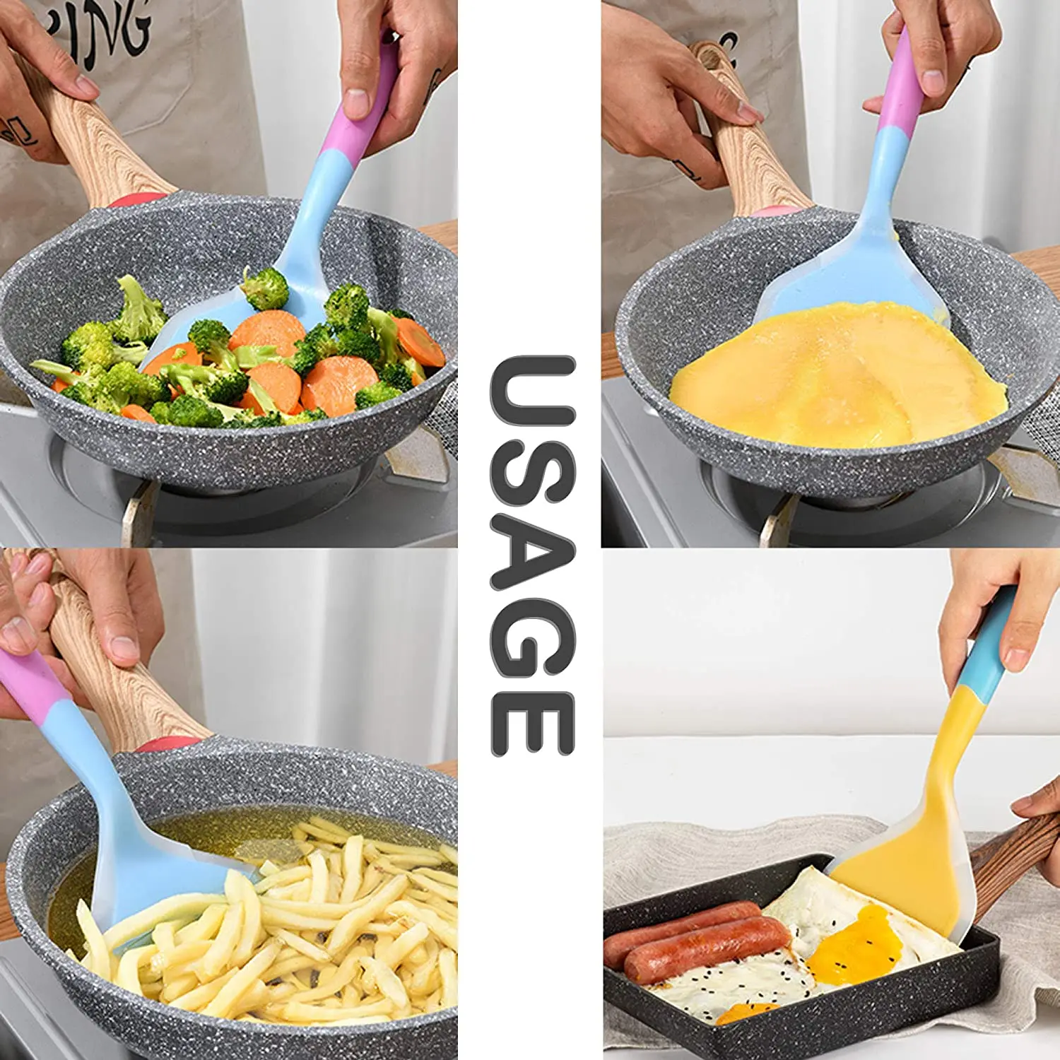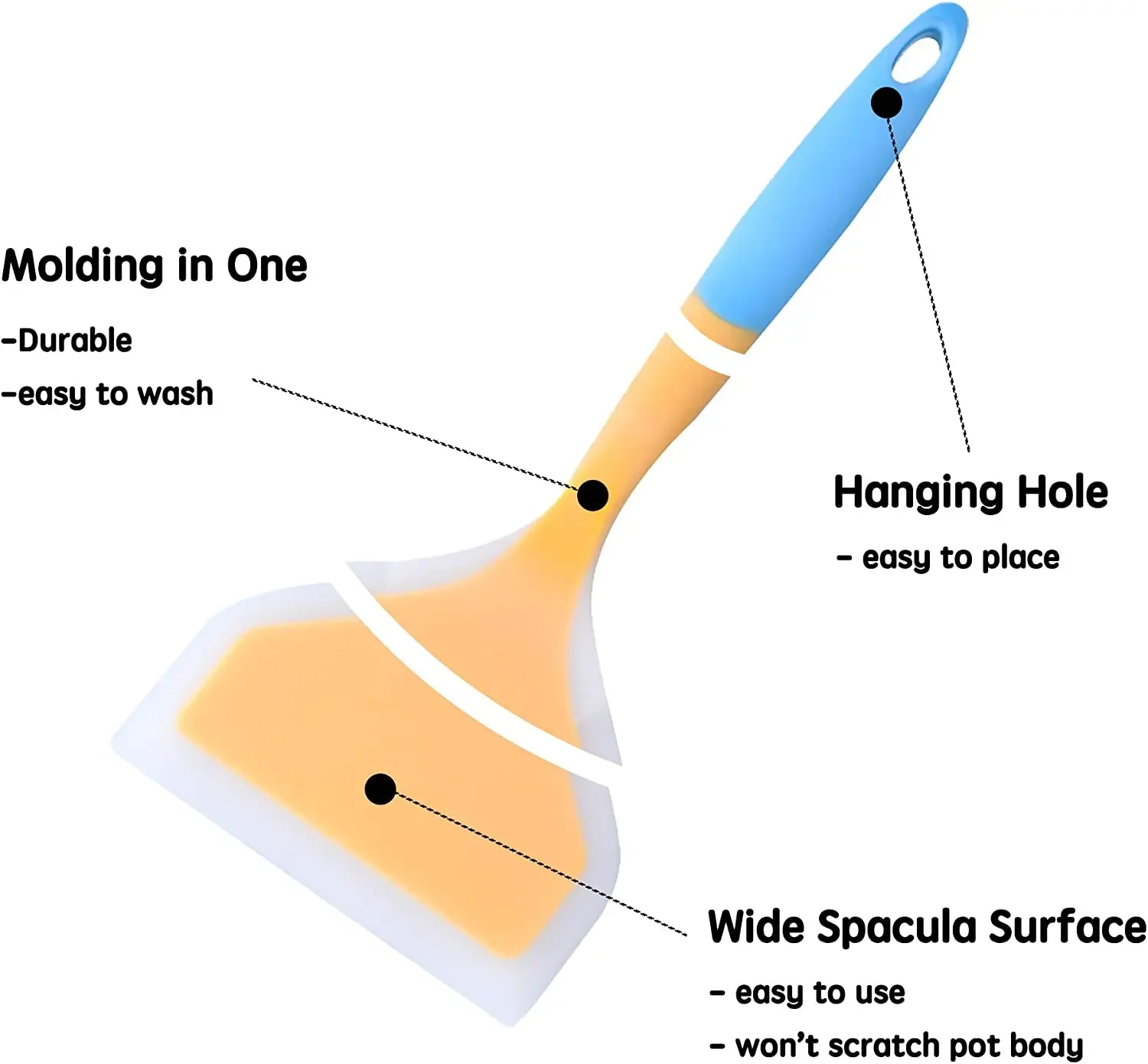 This kind of silicone spatula is suit for stew pot, non-stick pan, saucepan, ceramic pot and other pots, avoiding scratching your pot.