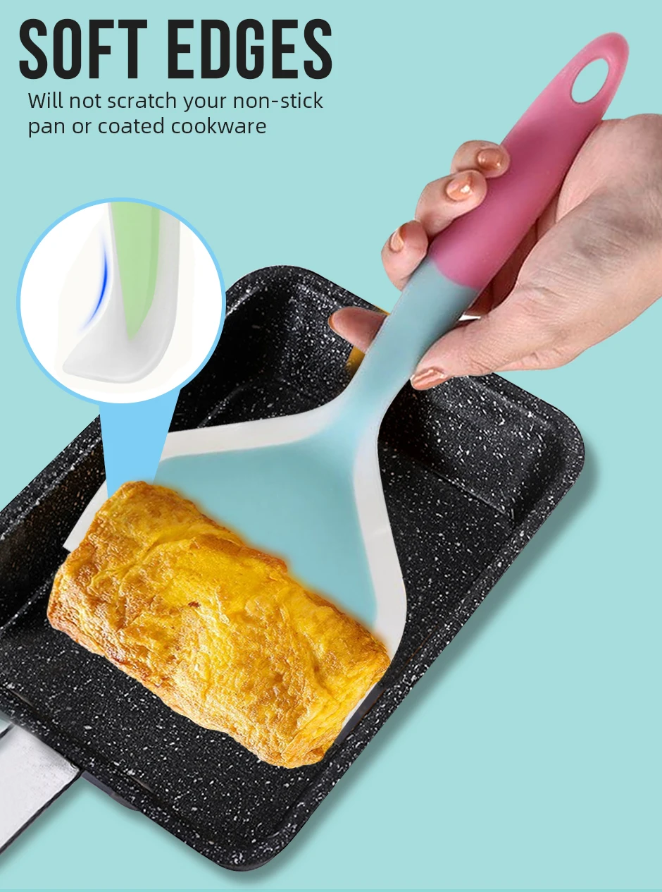 Silicone Spatula Cooking Utensils Beef Meat Egg Kitchen Scraper Wide Pizza Cooking Tools Shovel Non-stick Spatula Color Randomly