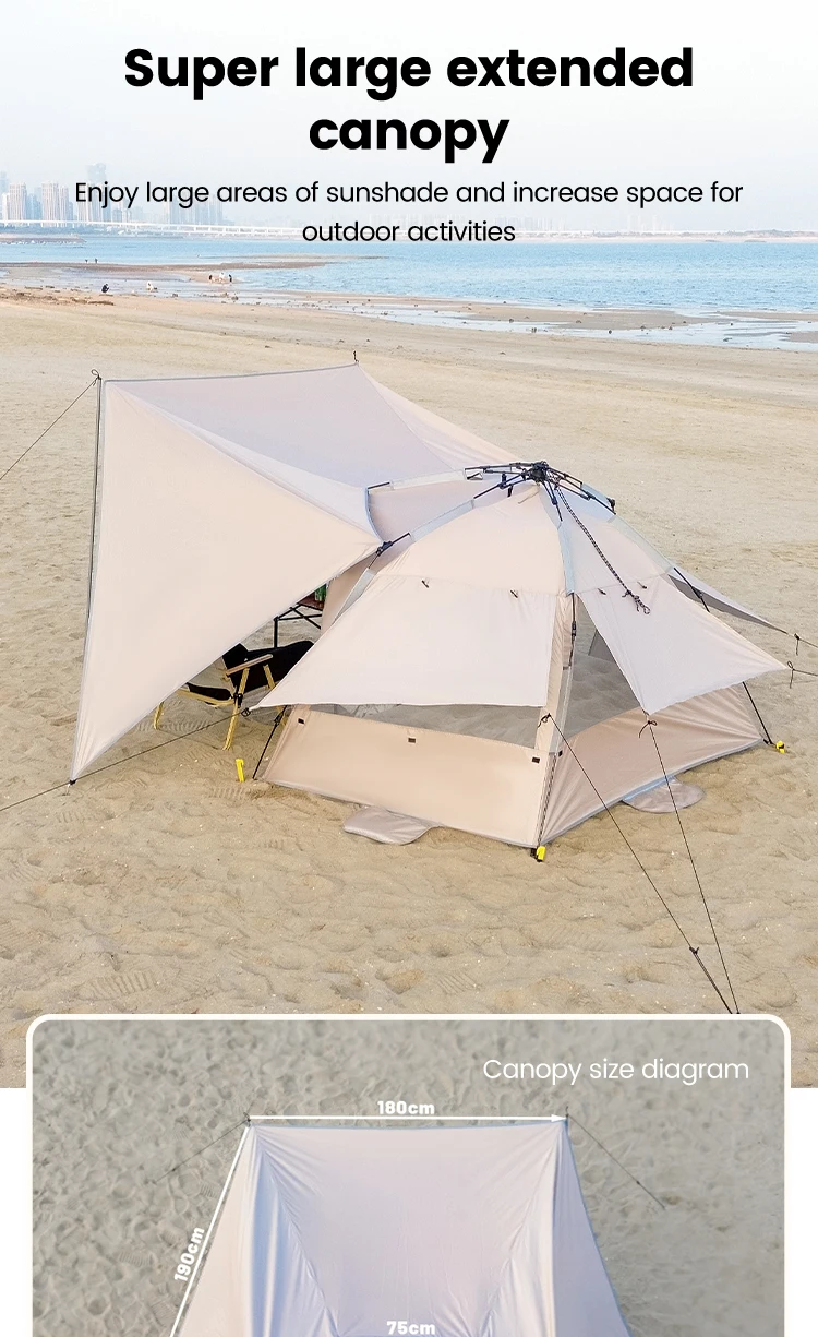 Sonuto Outdoor 3-4P One-Touch Camping Tent Quick Automatic Opening Beach Fishing Tent Family Travel Picnic Park Anti-UV Shade